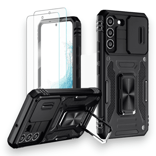 Združljivo s Samsung Galaxy S22 5G. V kompletu je ovitek in 2 zaščitni stekli za zaslon.