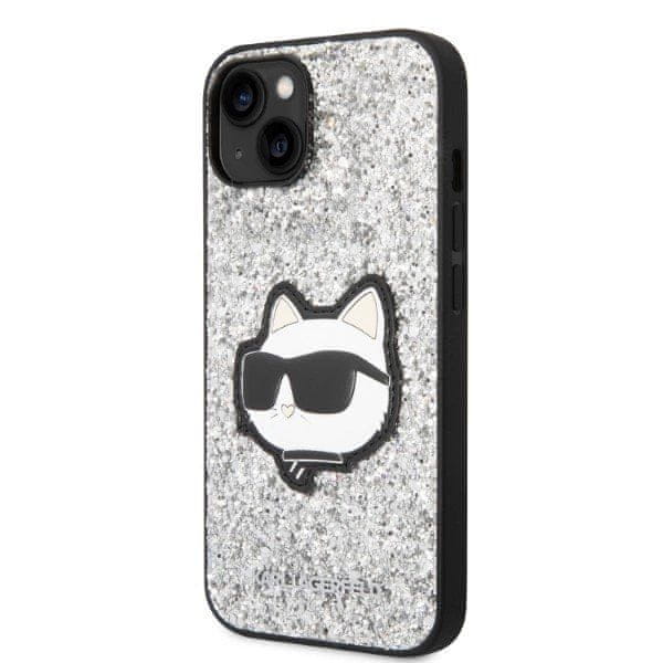 Karl Lagerfeld Etui Karl Lagerfeld Glitter Choupette Patch na iPhone 14 - srebrne