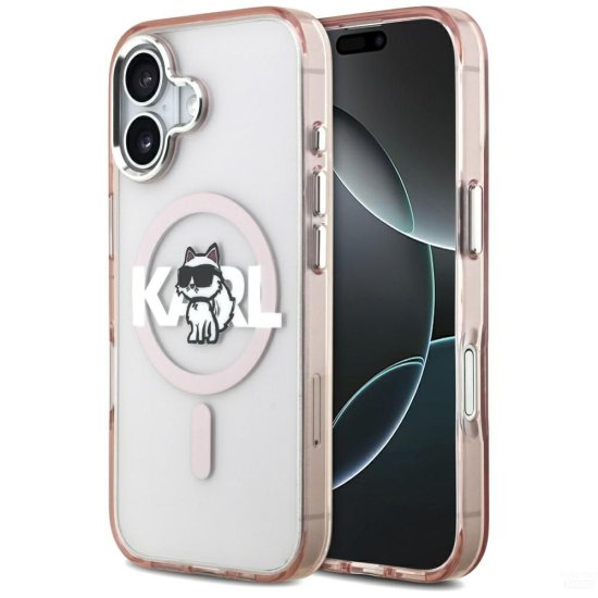 KARL LAGERFELD ovitek za iPhone 17, združljiv z MagSafe KLHMP17SHGCHGKBP (IML Choupette Sketch Logo) roza Celoten opis