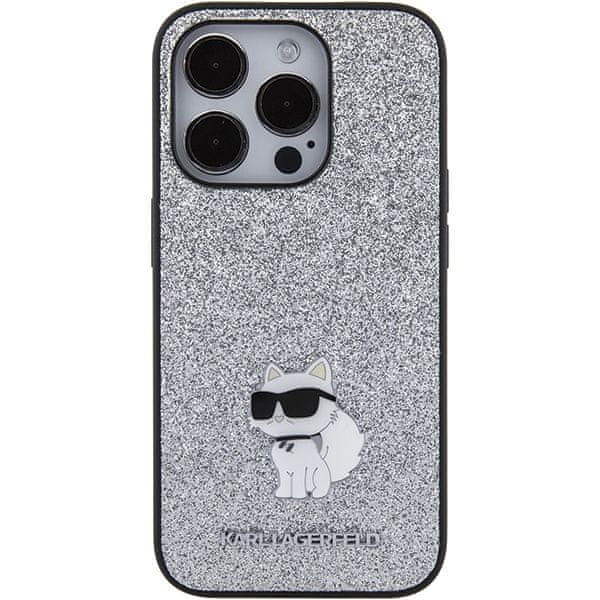 Karl Lagerfeld Ovitek Karl Lagerfeld za iPhone 15 Pro - Silver Fixed Glitter Choupette Logo Metal Pin