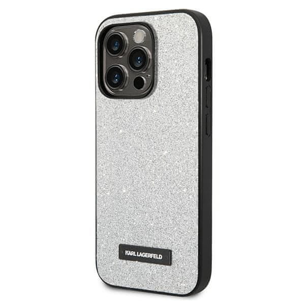 Karl Lagerfeld Ovitek Karl Lagerfeld za Apple iPhone 14 Pro Max - Silver Glitter Plaque Logo