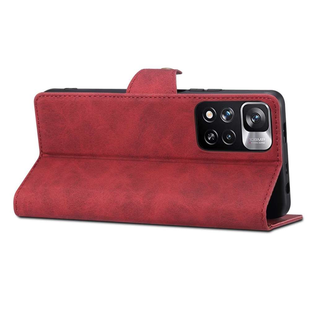Usnjen preklopni ovitek za Redmi Note 11 Pro+ 5G, rdeča – Zaščita telefona in zaslona pred praskami in padci, Prostor za kreditne kartice, Vgrajeno stojalo, Magnetno zapiranje. Celoten opis