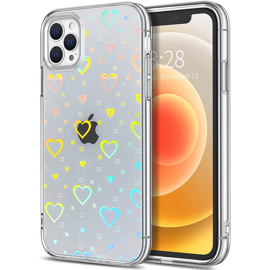 Onasi Clear Case silikonski ovitek Hologram za iPhone 14 Pro - prozoren s srčki