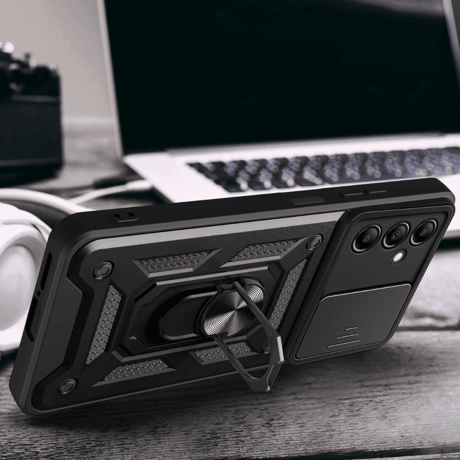 Silikonski ovitek Armor Ring z zaščito kamere za Samsung Galaxy S24 FE – črn