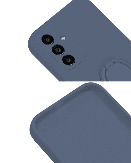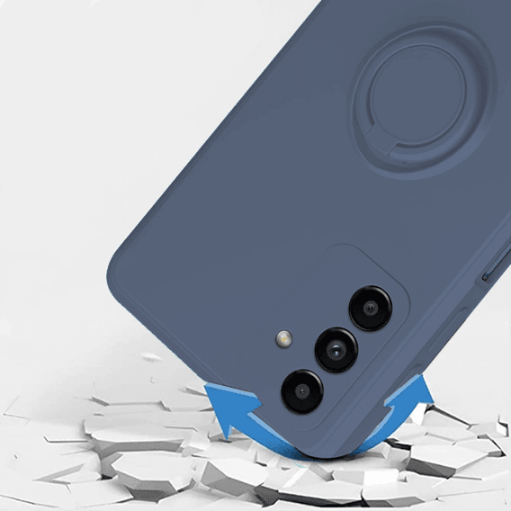Silikonski ovitek Liquid Ring za Samsung Galaxy A32 A326 5G v sivo modri barvi nudi odlično zaščito pred udarci in ima snemljiv obroček, ki služi kot priročno držalo ali stojalo. Z vgrajeno kovinsko ploščico je združljiv z magnetnimi nosilci, kar zagotavlja dodatno varnost in udobje pri uporabi. Celoten opis
