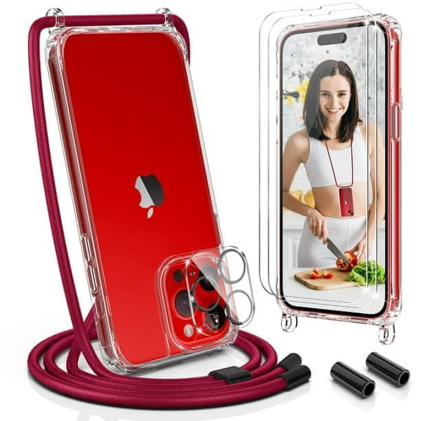 ETUI KOMPLET Z BURGUNDY vrvico APPLE IPHONE 13 PRO MAX 6.7"" + 3× STEKLO Celoten opis
