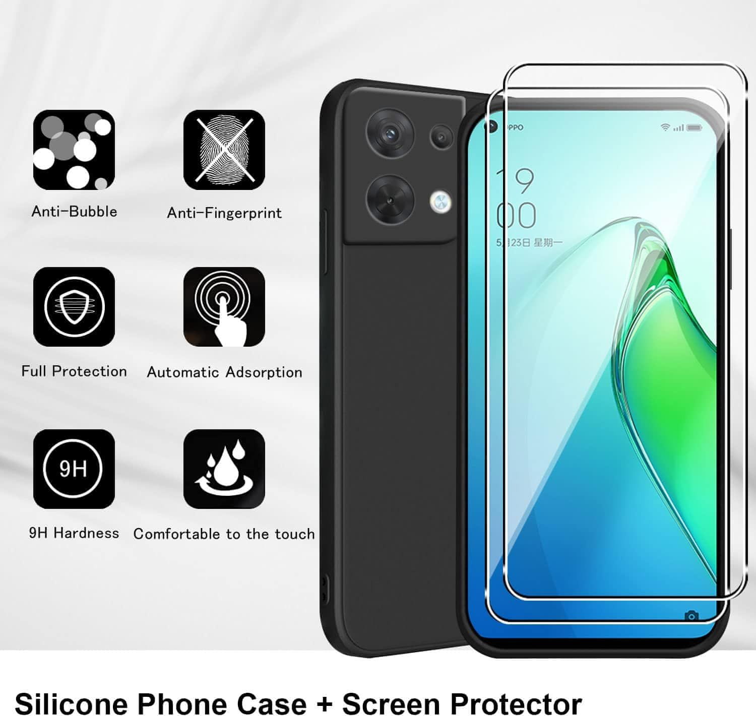 OVITEK + 2× 9H KALJENO STEKLO ZA OPPO RENO 8 5G SILIKON ČRNO Celoten opis