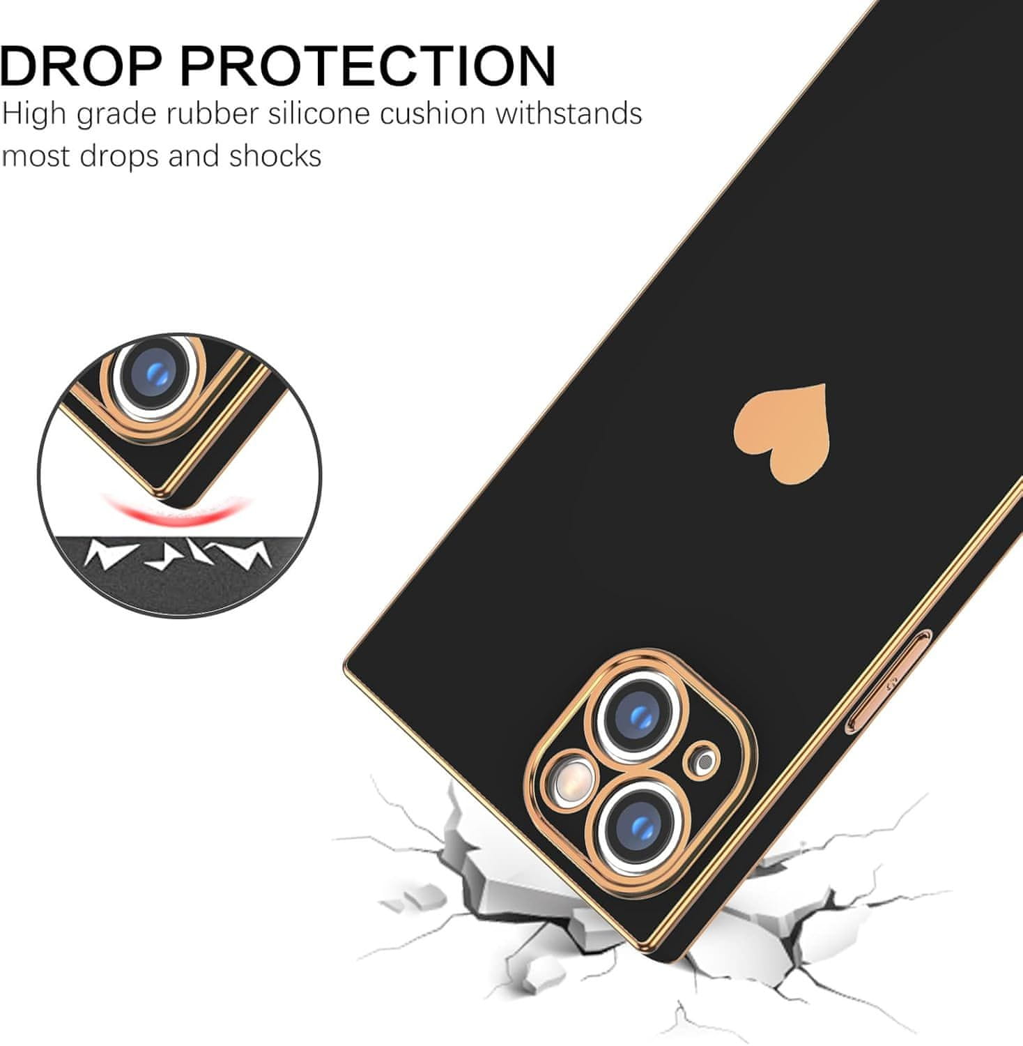 shumee OVITEK APPLE IPHONE 13 SVETEL SILIKON ČRNO ZLAT S SRČKOM