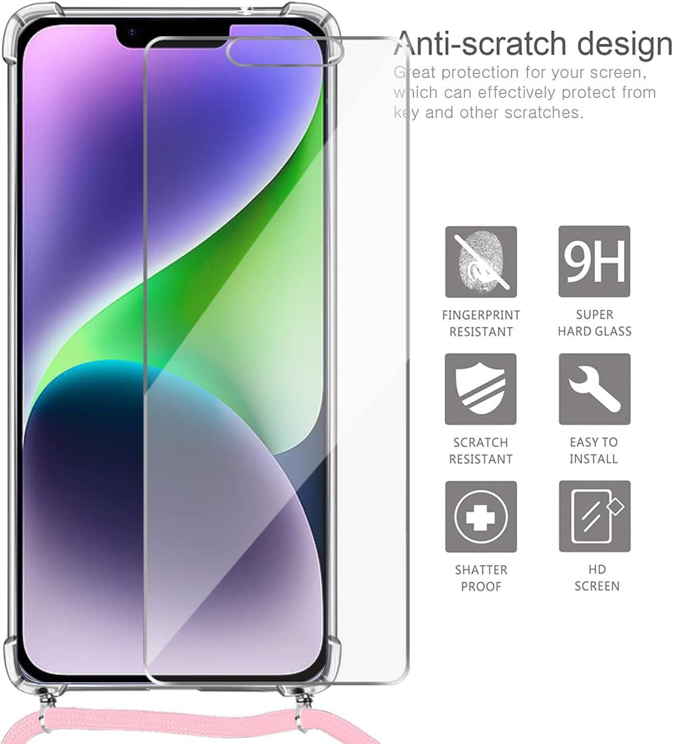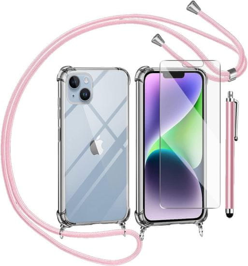 OVITEK APPLE IPHONE 14 Plus KALJENO STEKLO ROZA STYLUS LANYARD Celoten opis