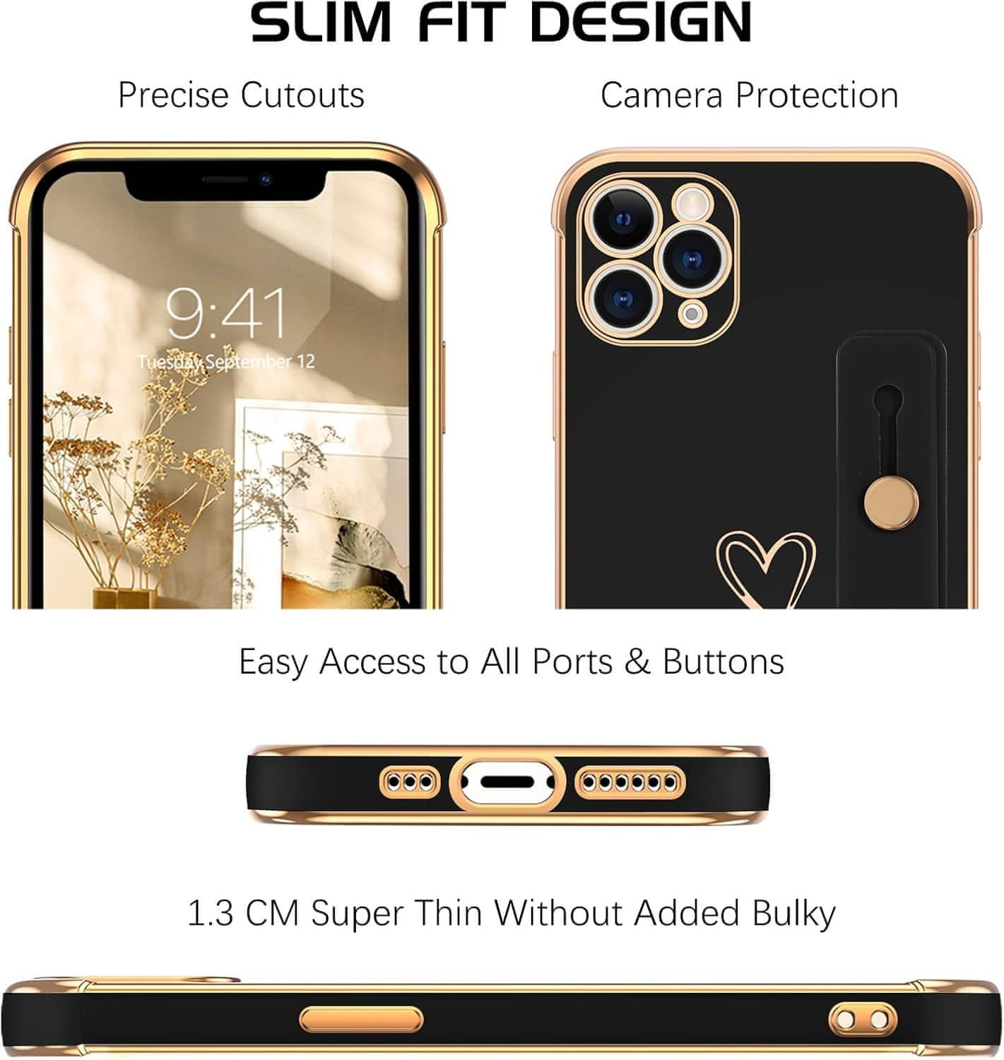 shumee OVITEK ČRNO ZA IPHONE 11 PRO OVITEK MOČEN ZLAT OKVIR DRŽALO SRČEK