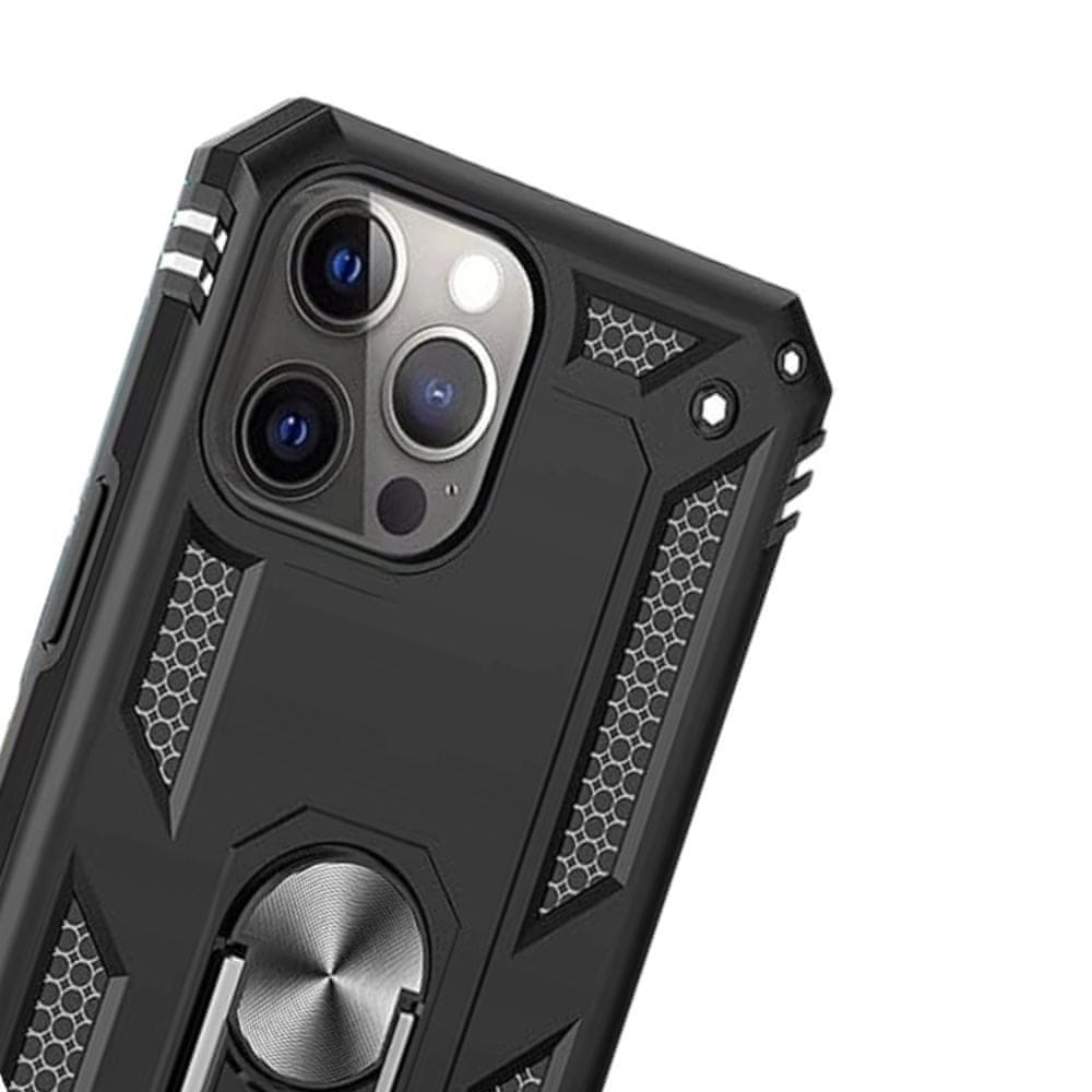 Ovitek LeYi Armored za iPhone 13 Pro Max, držalo za prst, črne barve Celoten opis