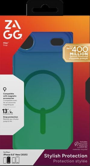 Zaščita pred padcem z višine do 4 metrov Pokrov Milan Snap ščiti vašo napravo pred padci z višine do 4 metrov. Ojačan z grafenom Pokrov Milan Snap je ojačan z grafenom, enim od najmočnejših materialov, ki jih poznamo na Zemlji. Grafen je material, ki je trši od diamanta, prožnejši od gume in približno 200-krat močnejši od jekla. Grafen je zelo prevoden, kar mu omogoča odvajanje toplote. Ta material se uporablja v letalstvu, profesionalnem športu, vojaški opremi itd. Tanka zasnova Kljub visoki stopnji zaščite, ki jo nudi pokrov opreme, Milan Snap ne povečuje nepotrebnega obsega opreme. Izdelano iz recikliranih materialov Podjetje ZAGG je zavezano trajnostnemu razvoju, zato je zaščitni pokrov izdelan iz do 74 % recikliranih materialov. Združljivost s sistemom MagSafe Pokrov je združljiv s sistemom MagSafe in večino brezžičnih polnilnikov. Protimikrobna sestavina Milan Snap ima protimikrobno komponento, ki ga ščiti pred bakterijami, ki povzročajo propadanje materiala in neprijeten vonj.
