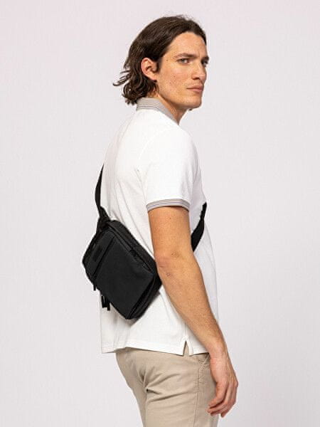 Moška torba za čez ramo. V črni barvi. Celoten opis
