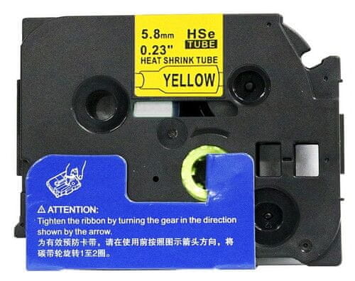 Kompatibilen trak (cev) za Brother HSe-611 / HS-611 / PT / P-Touch 5,8mm, termoskrčljiv (heat shrink tube) – črn izpis / rumen trak (cev)