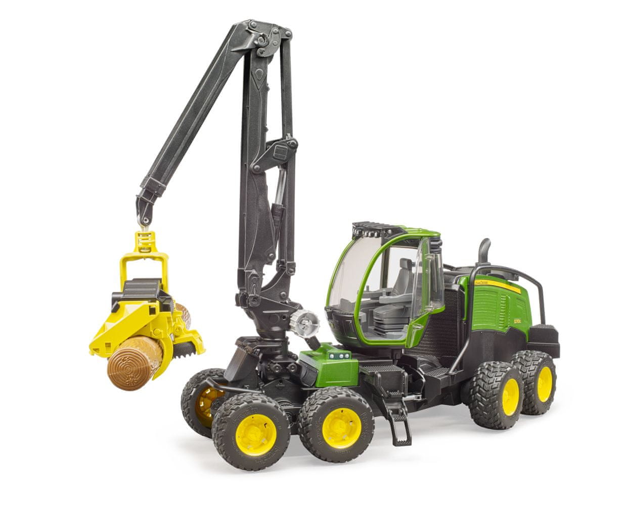 Z osmimi kolesi so gozdarski kombajni John Deere 1270G stabilni in imajo največjo oddaljenost od tal. Ta impresivni model ponuja impresivno količino natančno izdelanih podrobnosti. Do kabine se dostopa po zložljivih stopnicah in jo je mogoče obračati po celotni dolžini, z odpirajočimi se vrati in združljivostjo s figuricami BWORLD. Podvozje je opremljeno s štirimi nihajnimi osmi, robustne pnevmatike koles pa imajo podroben terenski vzorec. Prefinjena premična roka z enoto za žago ima funkcionalne čeljusti s podrobnostmi drsnih valjev. Model vključuje drevesno deblo s podstavkom, zato lahko takoj začnete z igranjem. Izdelano v Nemčiji iz visokokakovostnih materialov. Glavne značilnosti:kombajn in deblo drevesa s podstavkomobračljiva kabina z zložljivimi stopnicami in odpirajočimi se vratipremična roka s funkcionalnimi kleščami za žaganjedrsne osizdružljiv s figuricami BWORLDizdelano v Nemčiji