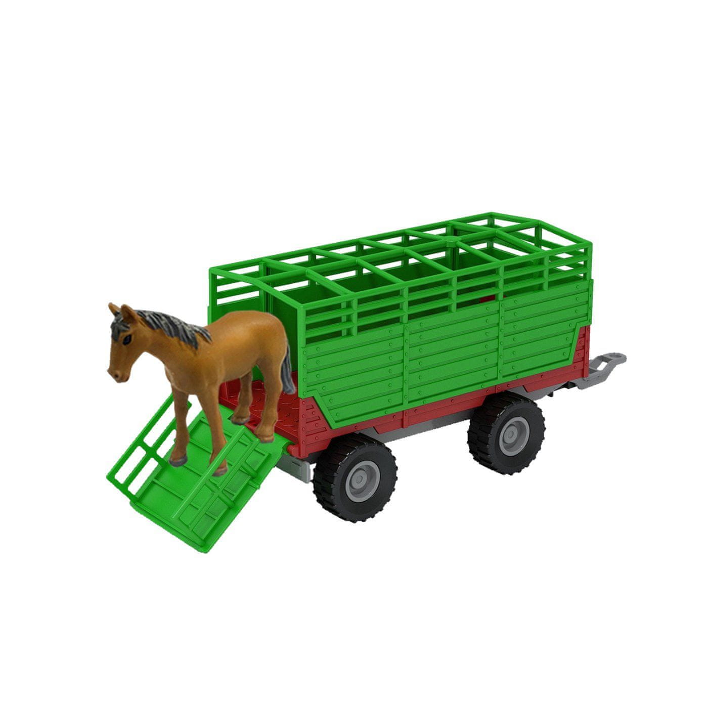Velik kmetijski traktor iz plastike z vozom za seno in dodatki. Celoten opis