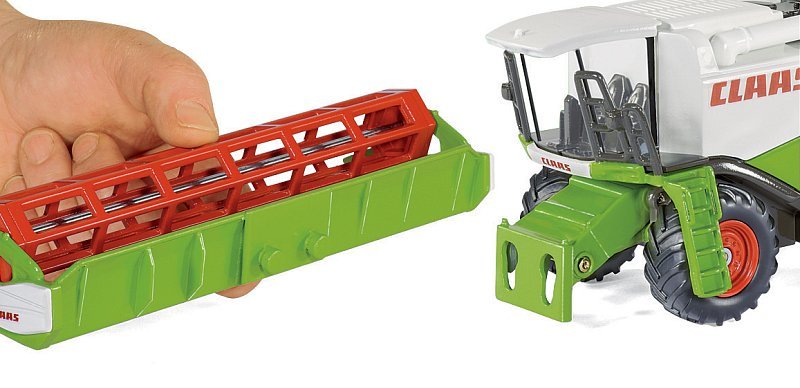 SIKU Farmer – Kombajn Claas Lexion 600. Zgornji del je kovinski z gibljivim plastičnim vitlom. Nakladalna cev je premična. Model deluje nemoteno. Kolesa so gumijasta z originalnimi detajli. Merilo: 1:50. Dimenzije: 241 × 182 × 83 mm. Velikost paketa: 28 × 20,5 × 14,1 cm. Starost: 3+