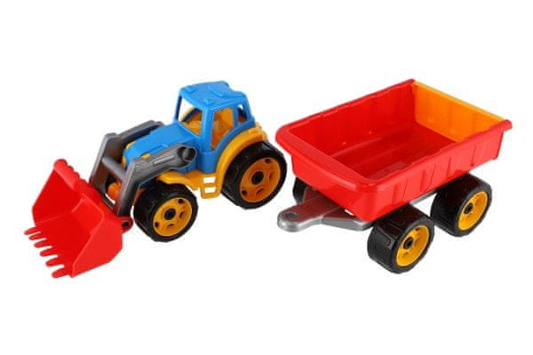 Barvni traktor z vleko in vedrom je primeren za vsakega malega kmeta in je izdelan iz visokokakovostne in trpežne plastike. S tem traktorjem se lahko zabavate tudi v peskovniku, saj bo otroke zabaval več ur. Tovor lahko prevažate z ene strani peskovnika na drugo. Dimenzije izdelka 61 × 16 × 16 cm. Primeren za otroke od 3. leta starosti.