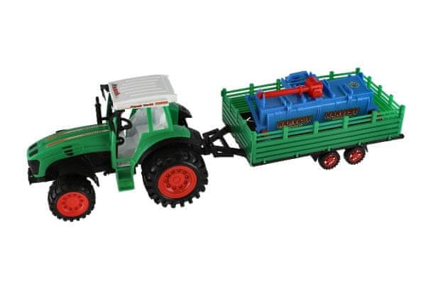 Traktor s prikolico je za vsakega malega kmeta nepogrešljiv in vsestranski pomočnik. Traktor je na vztrajniku in meri 52 cm. Neskončno delo na kmetiji se lahko začne. Traktor z rotavatorjem se lahko odklopi. Dimenzije paketa 19 × 17 × 55 cm. Primeren za otroke od 3. leta starosti.