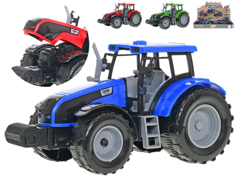 Traktor 20 cm na vztrajniku - mešanica barv (zelena, modra, rdeča)