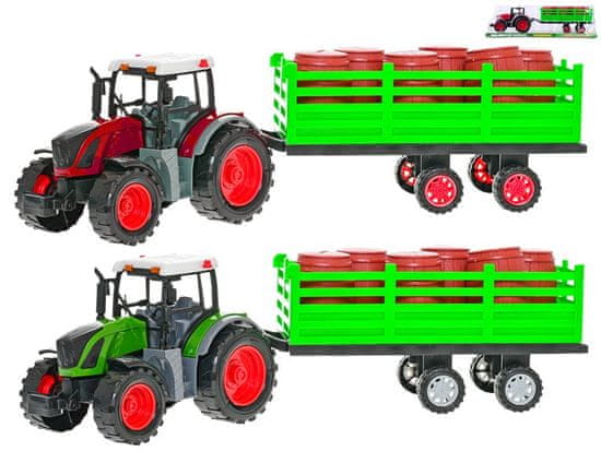 Traktor s 50-centimetrskim traktorjem + 6 sodov – mešanica barv (rdeča, zelena) Celoten opis