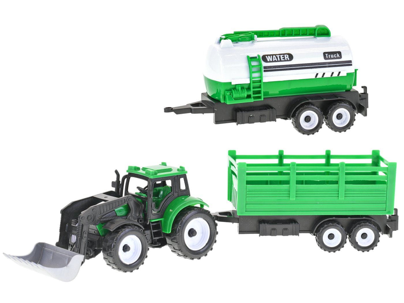 Traktorji so nedvomno ena izmed najbolj priljubljenih igrač, ki navdušuje tako mlade kot stare. Traktorski nakladalnik je dolg 17 cm in ima vztrajnik. Paket vključuje traktor + 2 stranska vozička. Na voljo so 3 vrste: plug, bager in nakladalnik. Primerno za otroke od 3. leta starosti.