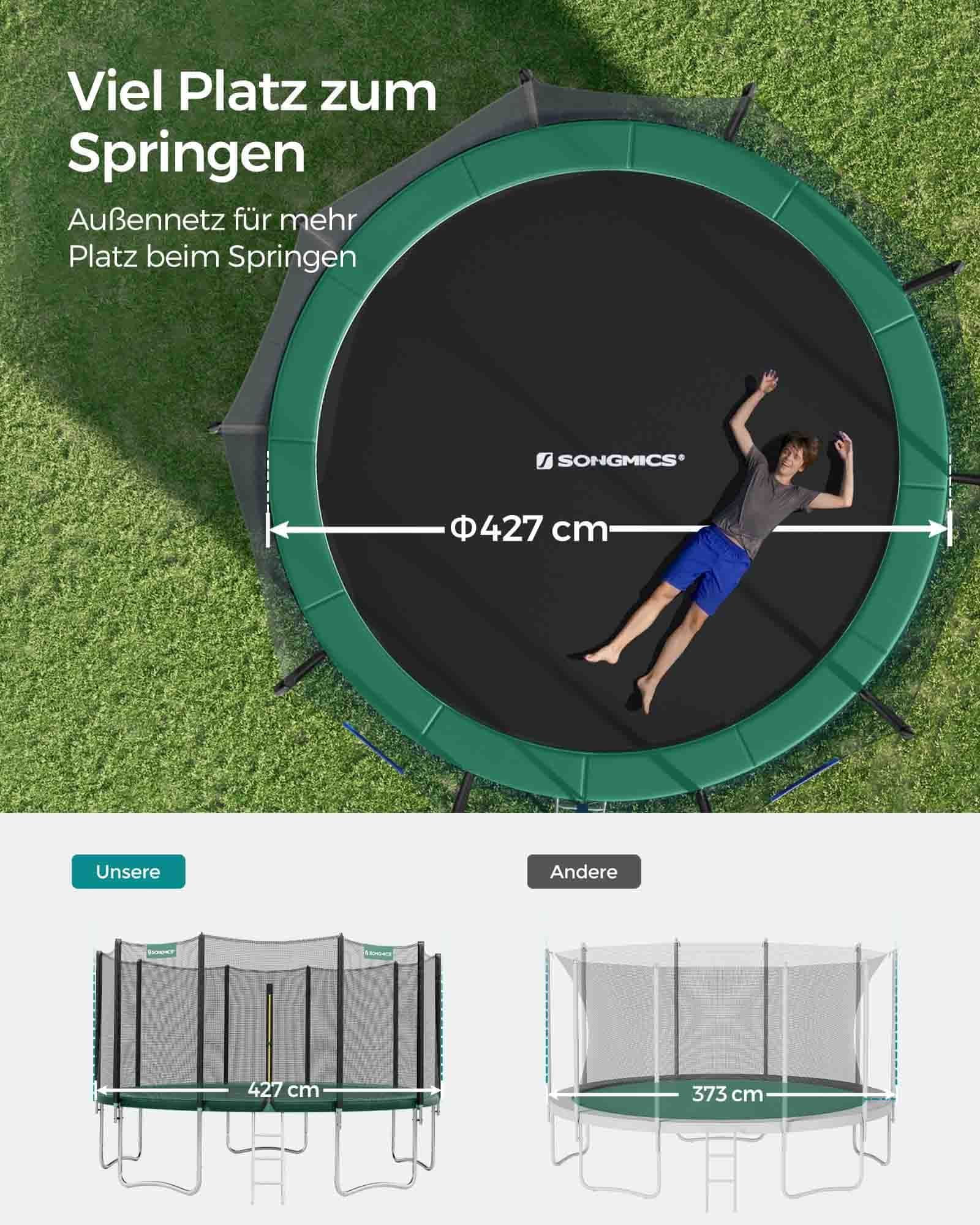 Songmics Trampolin okrogel z varnostno mrežo 427x270 cm zelena