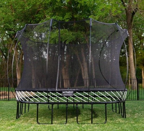 Trampolin Springfree Large Square ponuja skakalno površino 3,4 m x 3,4 m, kar je enako kot pri običajnih trampolinih 4 m x 4 m. Ta kvadratni trampolin ima robove SoftEdge, ki absorbirajo več udarcev za udobno skakanje, hkrati pa skakalcu omogočajo višje skoke. Ta model zagotavlja 10,5 m² površine za skakanje. Mreža FlexiNet®, ki obdaja kvadratni trampolin Springfree, zagotavlja varnost vseh skakalcev in preprečuje padce. Poleg tega zasnova brez vzmeti in skrita konstrukcija okvirja ne le povečata skakalno površino in prihranita prostor na vrtu, temveč tudi znatno povečata splošno varnost. Z velikim kvadratnim trampolinom Springfree uživajte v varnejši zabavi.