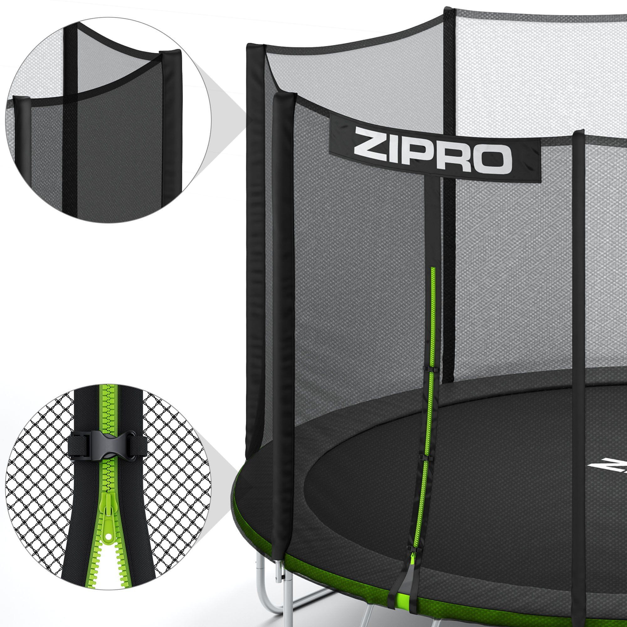 Trampolin Zipro prihaja z varnostno mrežo za varno skakanje, lestvijo, ki omogoča varen vstop na trampolin, in torbo za čevlje za praktično shranjevanje sezutih čevljev.