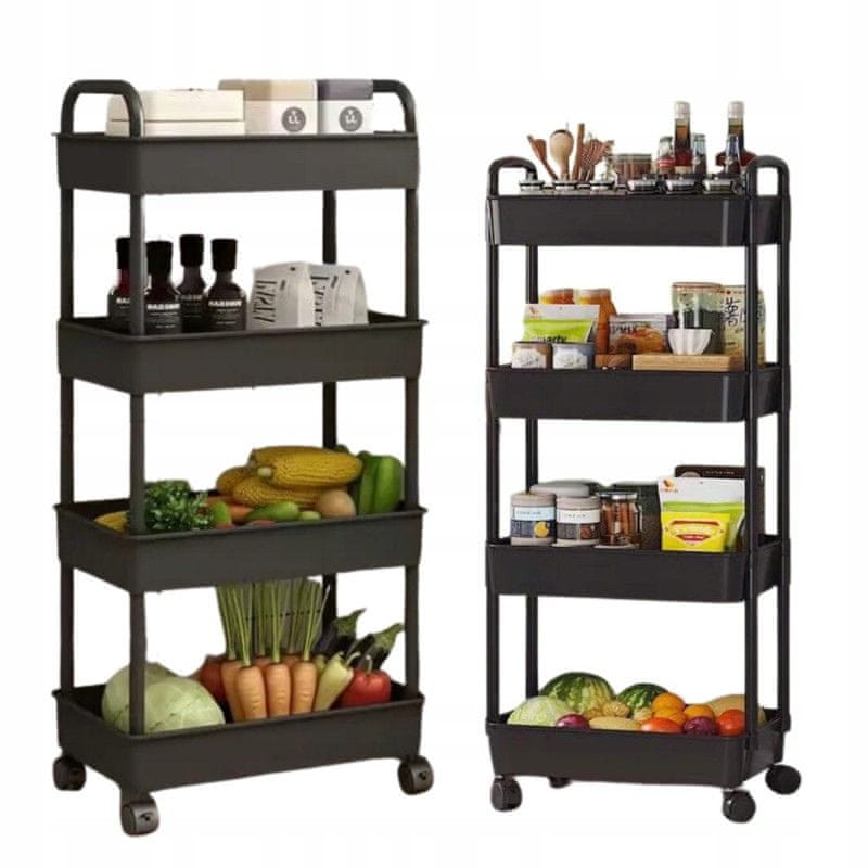 Voziček za shranjevanje – stabilna konstrukcija, nastavljivo število polic (največ 4), izdelan iz PP, nosilnost 20 kg, samostojna montaža, kompaktne dimenzije (36 × 84 × 24 cm), nizka teža (1 kg). Celoten opis