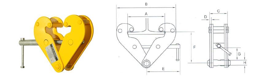 Fungerar som upphängningspunkt för lyftanordningar på en mängd olika I-balkar (t.ex. INP, IPE, IPB).