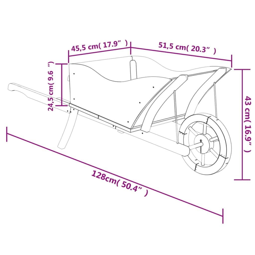 Vidaxl Korito samokolnica 128x45,5x43 cm trden les jelke