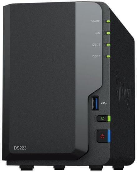 Synology DS223; Synology DS223; omrežni pomnilnik NAS z dvema režama za 3,5" ali 2,5" diske je naprava, zasnovana za varnostno kopiranje podatkov, sinhronizacijo in skupno rabo datotek v domačem okolju. Celoten opis