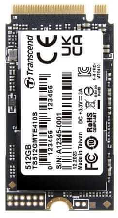 Transcend MTE410S 512 GB SSD M.2 2242, NVMe PCIe Gen4 x4 3300 MB/s R 1600 MB/s W