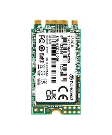 TRANSCEND MTS425S 250GB SSD M.2 2242, SATA III 6Gb/s (3D TLC), 500MB/s R, 330MB/s W