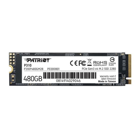 Vnotranji SSD disk Patriot P310 izboljša odzivnost ter skrajša čas zagona, nalaganja in prenosa aplikacij v primerjavi s tradicionalnimi trdimi diski. Ta model ima tudi napredno vdelano programsko opremo in tehnologijo SmartECC za nemoteno delovanje. Napredne tehnologije in funkcije zagotavljajo zanesljivo delovanje tudi pri povečanih delovnih obremenitvah in seveda poudarek na varnosti in celovitosti podatkov pri vsakodnevnih delovnih dejavnostih. Patriot P310 SSD je idealna izbira za povečanje zmogljivosti računalnika in produktivnosti, ne glede na to, ali delate z različno programsko opremo, izdelujete varnostne kopije obsežnih podatkov ali pa morate obdelovati videoposnetke 4K in druge vsebine visoke ločljivosti.