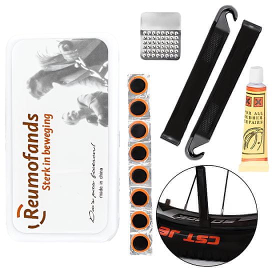 Zahvaljujoč VELIKEMU KOMPLETU kolesarskih obližev lahko potujete v popolnem udobju, prepričani, da boste po potrebi pnevmatiko popravili v nekaj trenutkih. Zaradi kompaktne embalaže se komplet enostavno prilega v nahrbtnik ali žep kolesa, zaradi česar je popoln spremljevalec na vsakem potovanju.