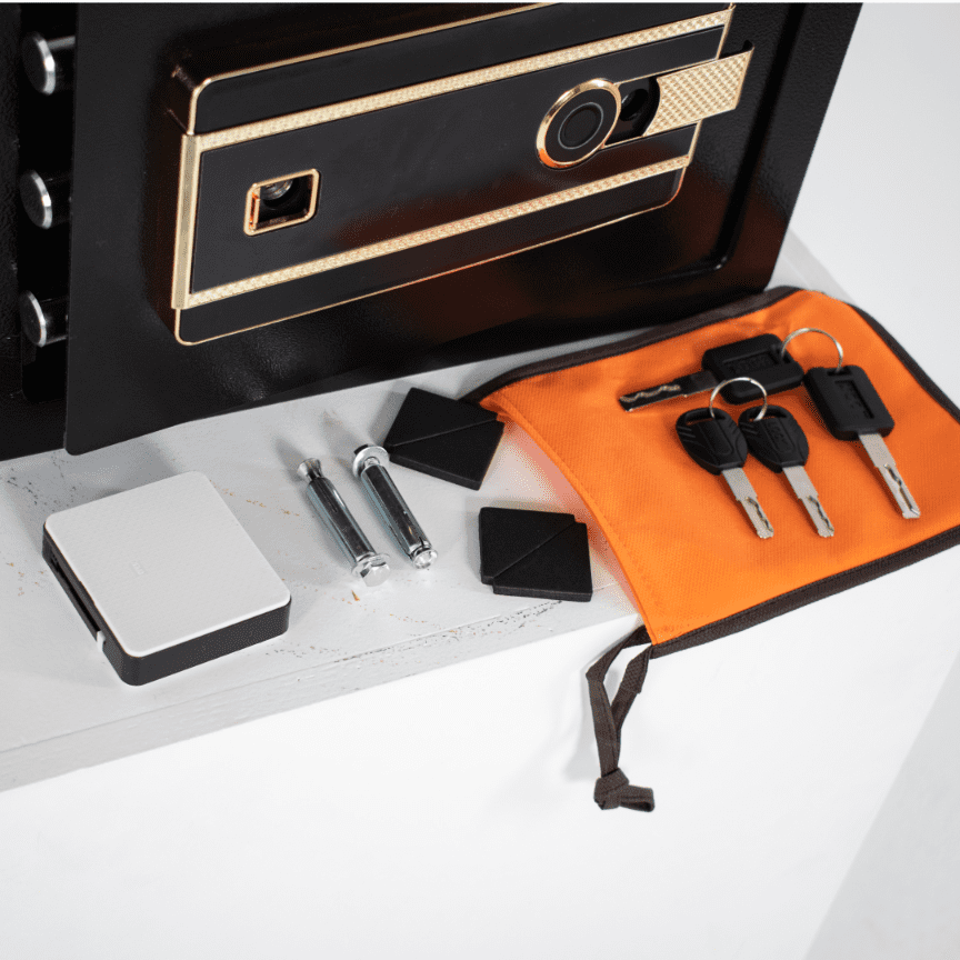 - Vsebina paketa: sef, navodila za uporabo, montažni elementi in 4 ključi