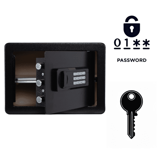 Nikcorp Domači sef 25x35x26 cm, elektronska ključavnica in ključ, jeklen, črn
