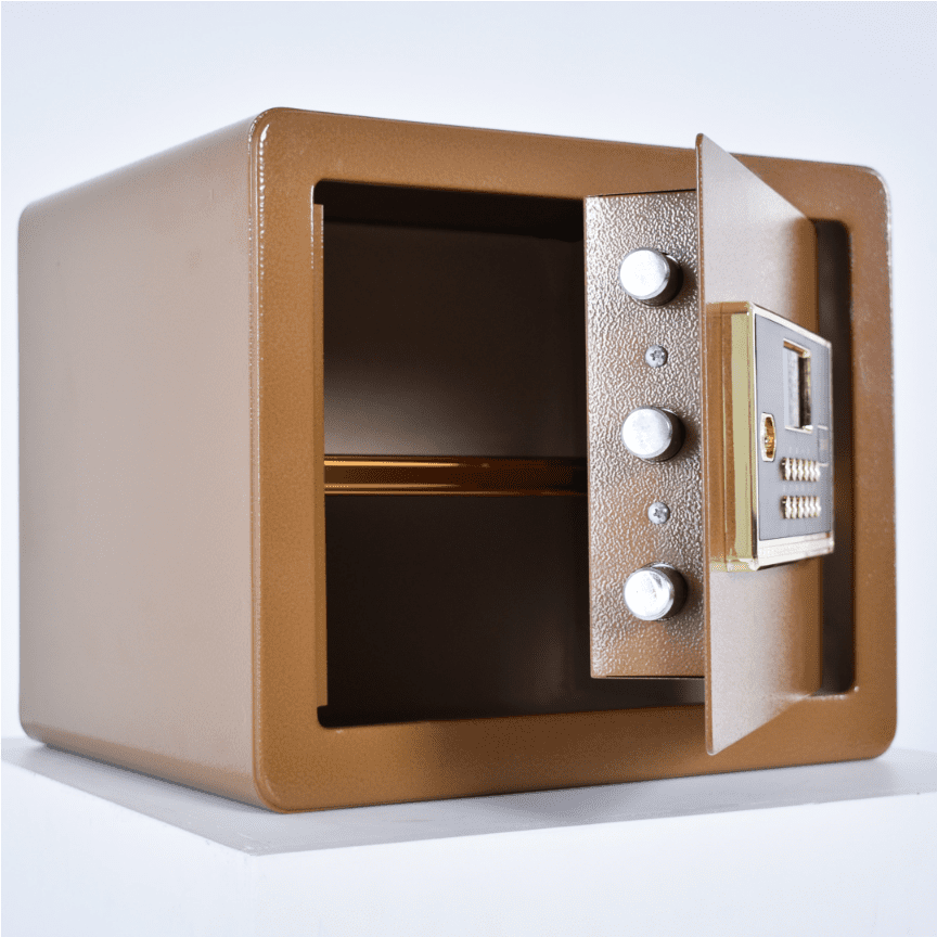 Nikcorp Domači sef 30x36x30cm z elektronsko ključavnico in ključem, oklepljen, rjav, z alarmom in odstranljivo polico