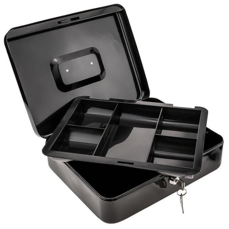 - V škatli je odstranljiv pladenj z 5 predelkov za kovance, bankovce ali drobiž, nakit.