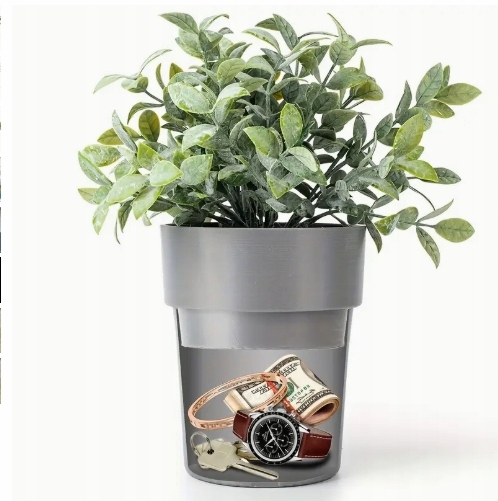 Cvetlični lonec izgleda popolnomaNeopazen– notri lahko celo posadite rožo. Nihče ne bo posumil, da je v notranjosti jekleni predal. To je odličen način za shranjevanje denarja, ključev ali spominkov. Varna alternativa klasičnemu sefu.