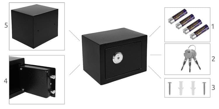 Varnostni sef ima na vratcih ključavnico, ki se zaklepa s ključem (priložena 2 ključa). Ključ imate lahko vedno pri sebi ali ga spravite na varno mesto stran od omarice.