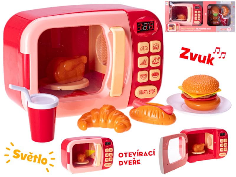 Mikrovalovna pečica 22×15×10 cm rdeča na baterije z dodatki s svetlobo in zvokom Celoten opis