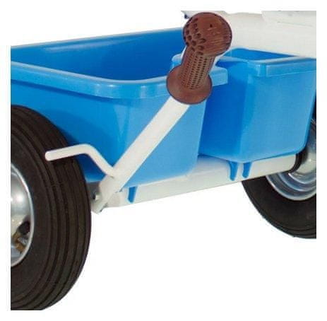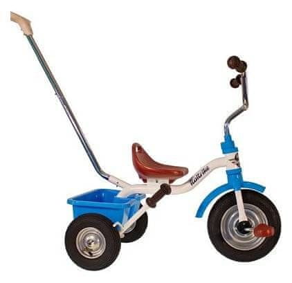 - Sprednje kolo s sistemom „free wheel“, vrti se v prostem teku, ko odrasel potiska tricikel.