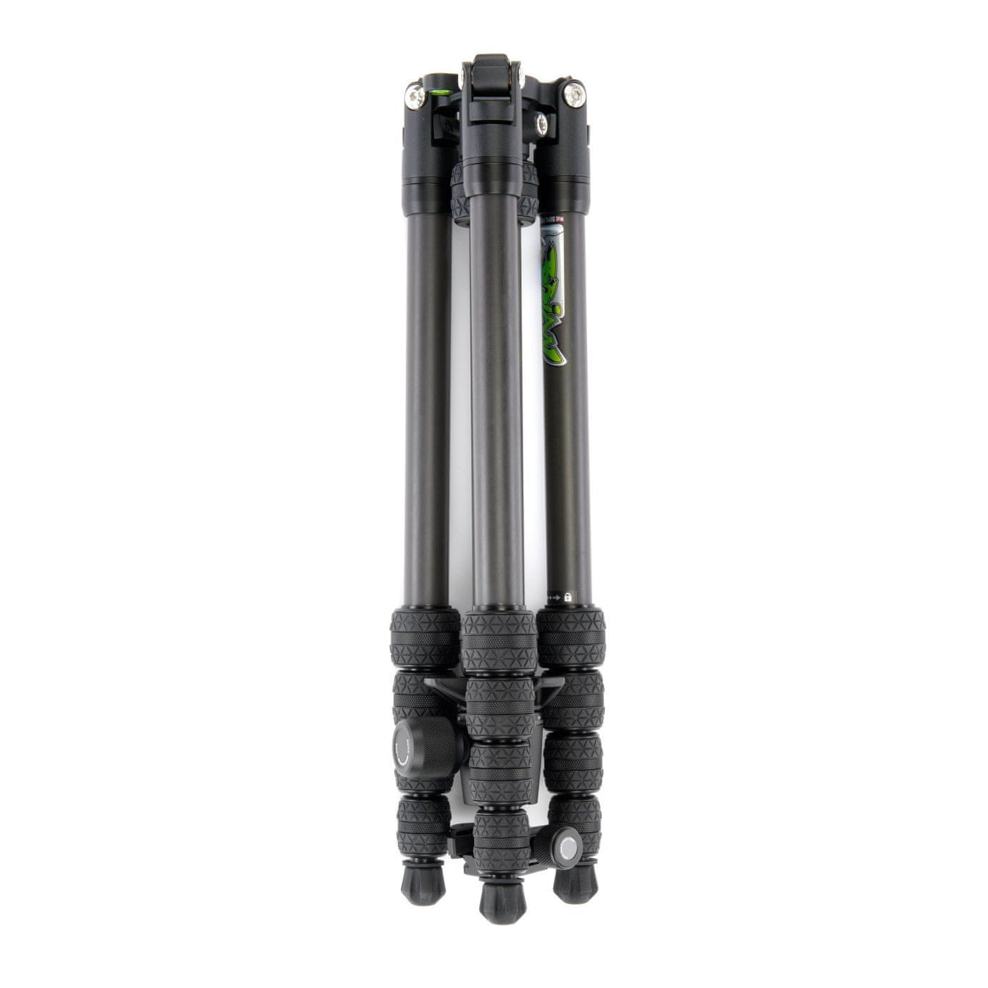 Modularna zasnova stativa bo ustrezala številnim fotografskim aplikacijam in vam pomagala premagati tudi najzahtevnejše terenske razmere. Podstavek za izravnavo ima na eni strani zaklepni gumb za zaklepanje ali odklepanje grederja. Trganje nato nadzoruje D-obroč na spodnji strani podlage, ki omogoča tudi zelo enostavno pritrditev uteži na noge za večjo stabilnost.