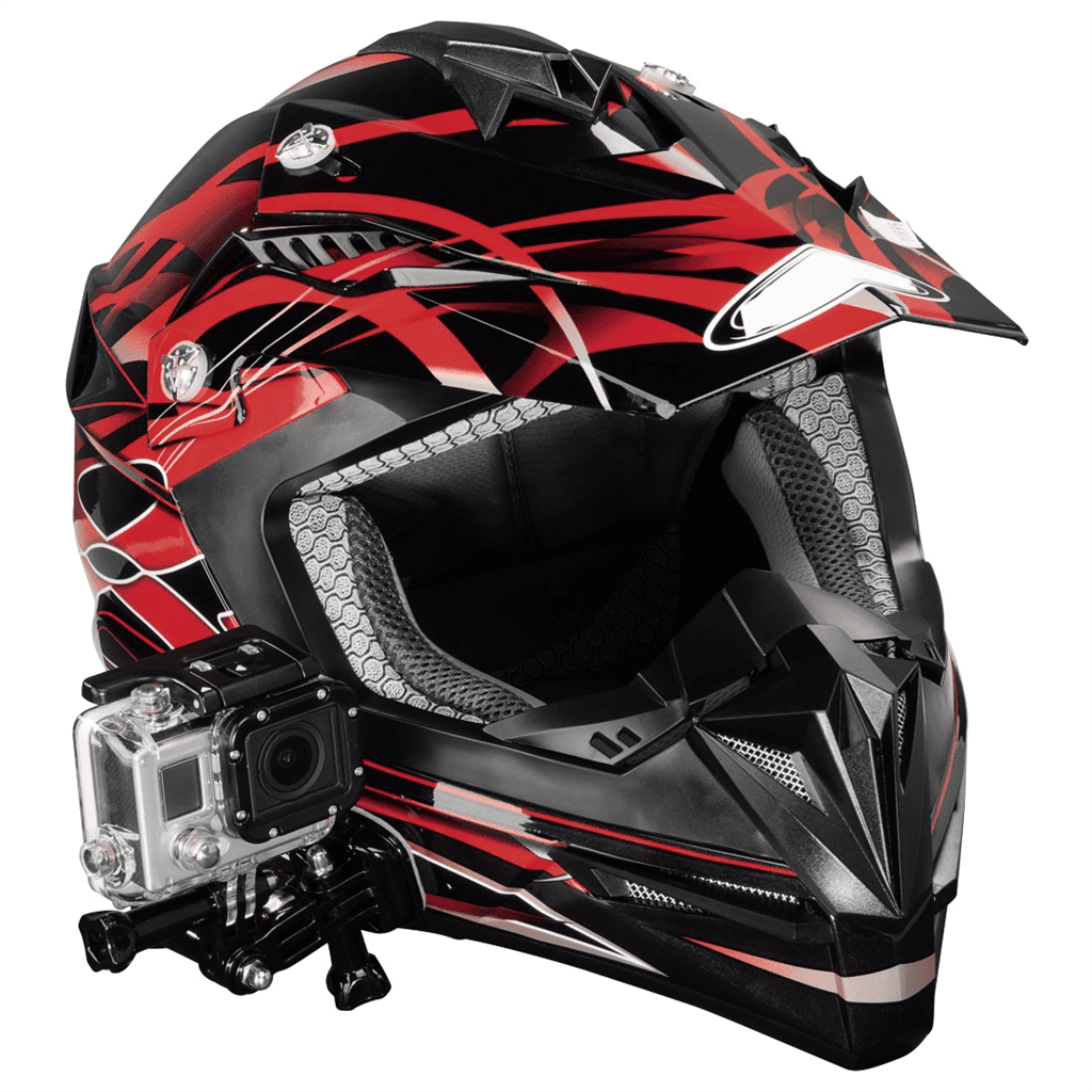 • samolepilni nosilec za kamere GoPro, postavitev na stran – z ukrivljeno ploščo primeren za športne in (moto)kolesarske čelade – z ravno ploščo primeren tudi za druge površine, npr. vozilo, okno …