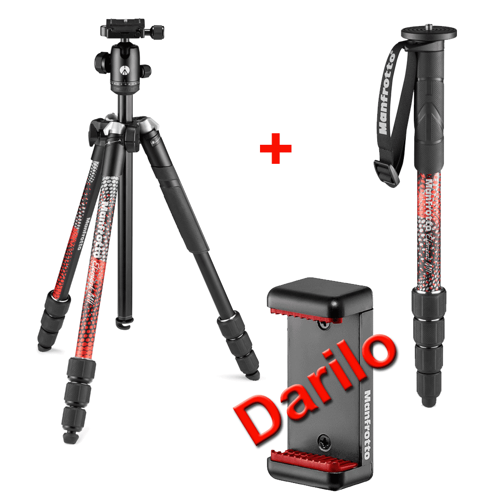 Manfrotto Komplet Aluminijasto stojalo Element MII s krogljično glavo (MKELMII4RD-BH) + Monopod Element MII + DARILO nosilec za telefon (MCLAMP)