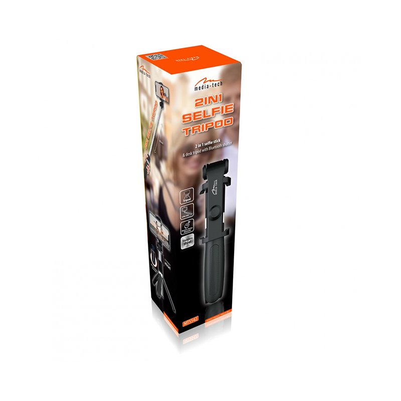 Tripod Selfie 2in1 z bluetooth MT5542 – Selfie palico in stojalo v enem! Dodatek služi kot selfie palica in stojalo z daljinskim upravljalnikom Bluetooth. Selfie palica je zasnovana za fotografiranje selfijev in posnetkov z večjih razdalj in višjih perspektiv. Teleskopska oblika omogoča, da selfi palico podaljšate do 68 cm. Udoben ročaj zagotavlja stabilen oprijem. Stativ se lahko uporablja tudi kot namizno stojalo med video konferenco. Tripod Selfie 2in1 z bluetooth MT5542 ima poseben daljinski upravljalnik Bluetooth za upravljanje zaklopa kamere na vašem pametnem telefonu. Daljinski upravljalnik je nameščen v ročaju naprave, po potrebi ga samo izvlecite in vzemite s seboj. Daljinski upravljalnik Bluetooth je združljiv z Android 5.0 in iOS 5.0 in novejšimi. Teleskopska roka je izdelana iz nerjavečega jekla, ostale komponente pa iz trpežne plastike. Napravo je mogoče zložiti na kompaktno velikost. Nošenje v torbi ali žepu ni problem.