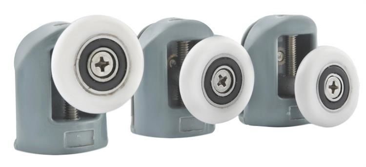 Komplet zgornjih in spodnjih kolesc za tuš kabino s čepi in odbijači. Zgornji valj ima nastavljiv vpenjalni element. Kolerji so pritrjeni na ležajih , primerne so za steklo debeline 4–6 mm, prilegajo se različnim vrstam tuš kabin.